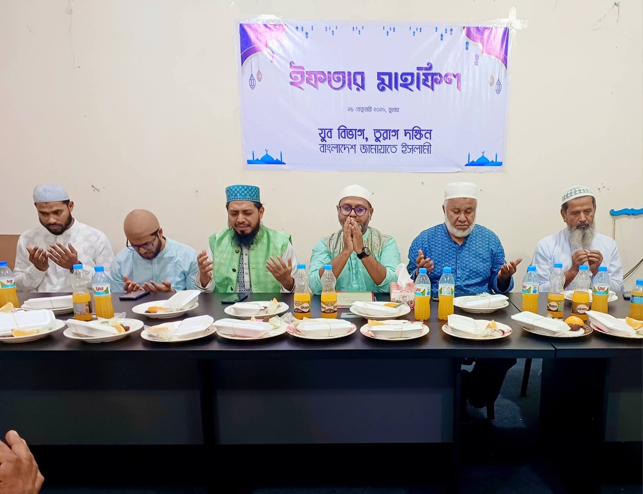 বাংলাদেশ জামায়াতে ইসলামী তুরাগ দক্ষিন থানার যুব বিভাগের উদ্যোগে ইফতার মাহফিল অনুষ্ঠিত হয়েছে। বুধবার, ২৫ ফেব্রুয়ারী ২০২৬ যুব বিভাগ দায়িত্বশীলদের উপস্থিতিতে ইফতার মাহফিলটি অনুষ্ঠিত হয়।